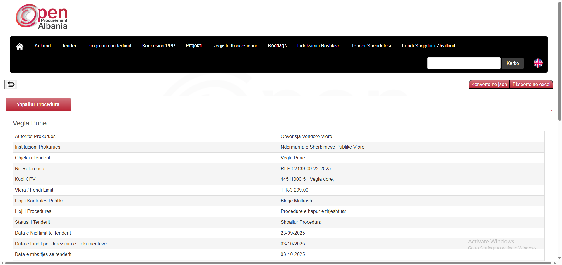 5 - 10 ditë nga nenshkrimi i kontrates. |
